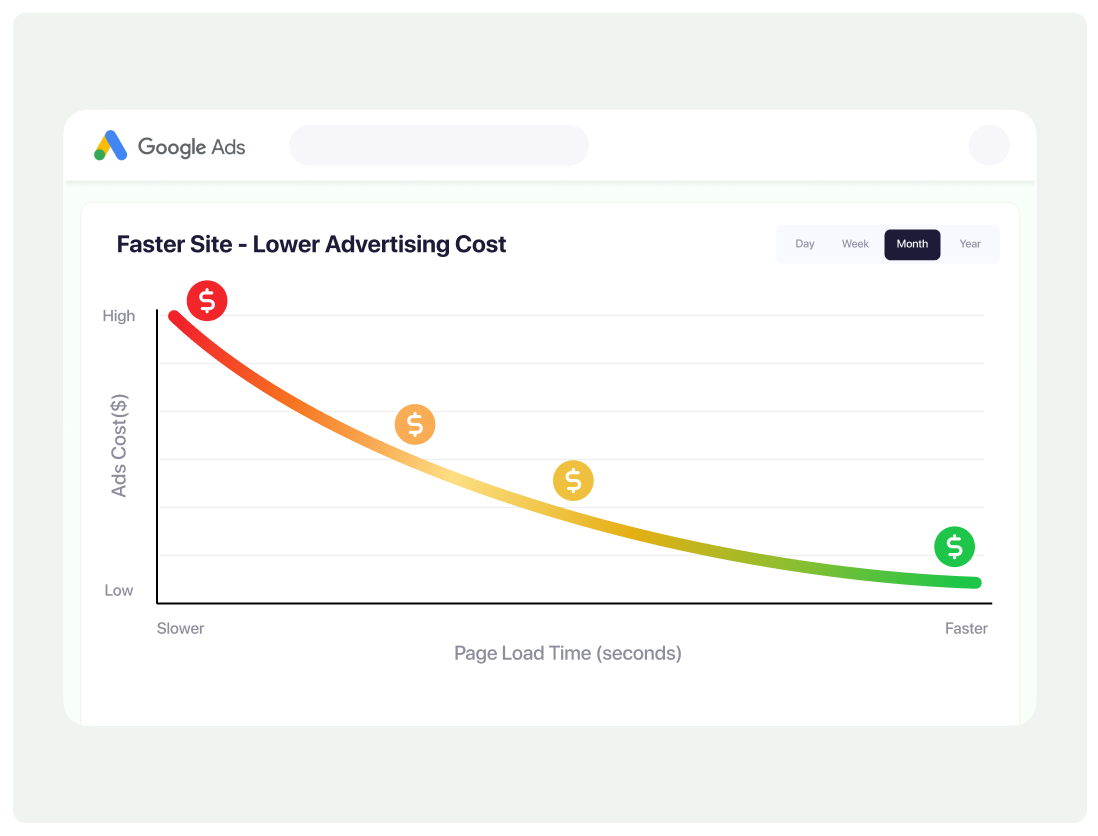 Ditch wasteful ad spend on sluggish pages. Speed improves Quality Scores and lowers bounce rates from ads. You get reduced ad CPC and higher ROAS while customers get a better experience. We optimize your site’s performance so both sides score.