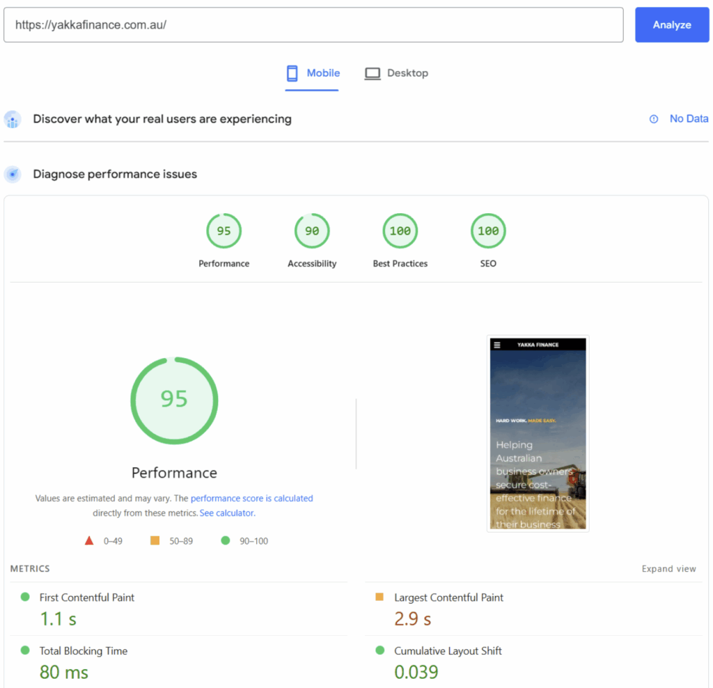 Yakka Finance wanted to improve website speed to increase the effectiveness of their advertising and provide a faster browsing experience for potential clients.
