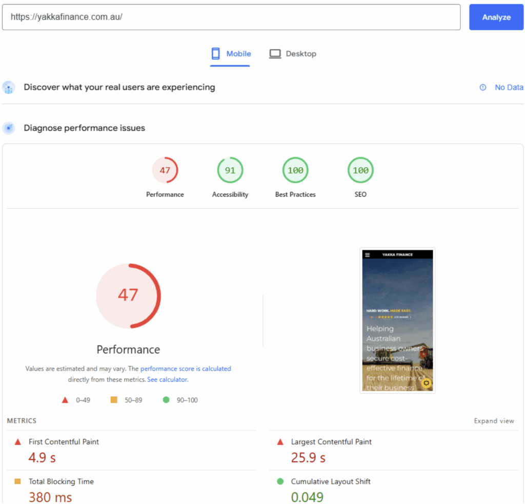 Yakka Finance asked us to help improve the speed and responsiveness of their WordPress site. Their advertising campaigns depended on a fast-loading website, but the existing setup had slow loading times caused by theme issues, plugin weight, third-party scripts, image bloat, and general inefficiencies across the installation.