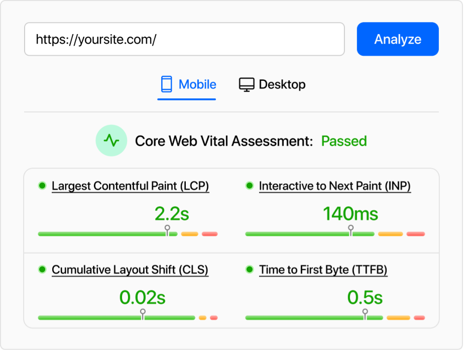 Most internal teams try, but site speed optimization requires specialized expertise across technical SEO, server performance, and Core Web Vitals. We’ve optimized 1,500+ sites and know how to tune WordPress, WooCommerce, and Shopify safely without breaking functionality.